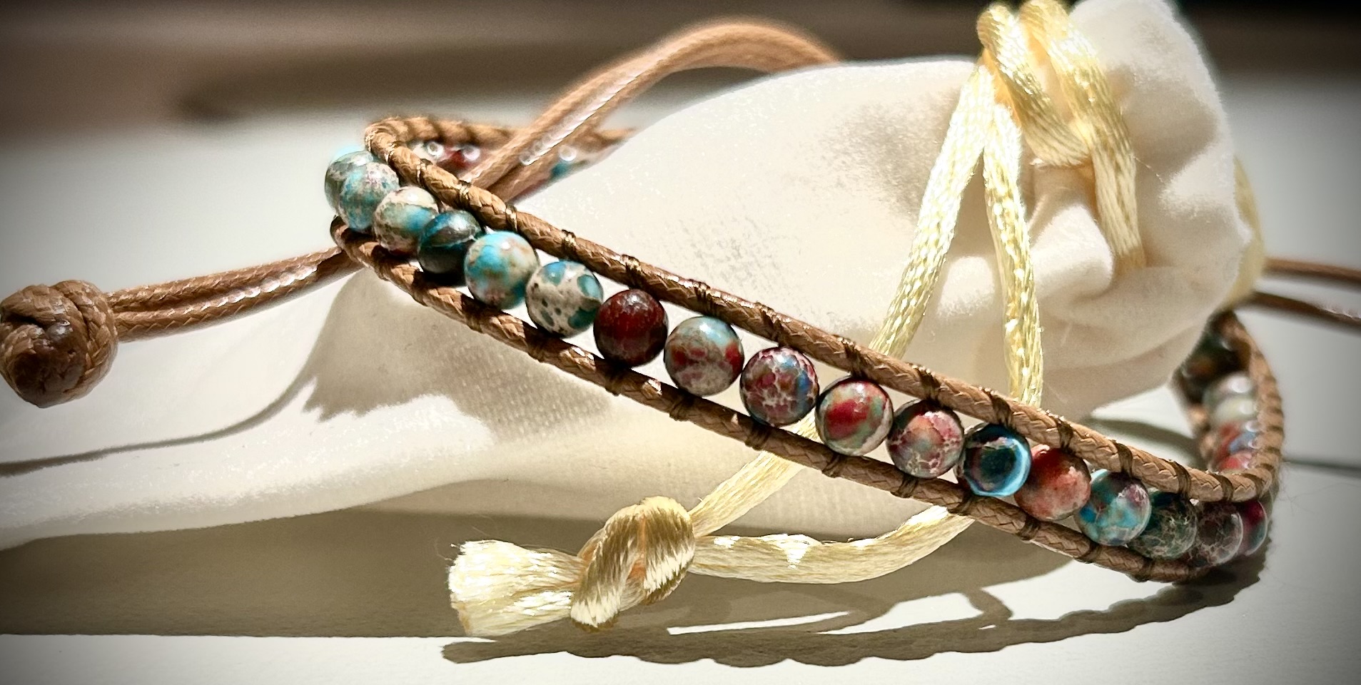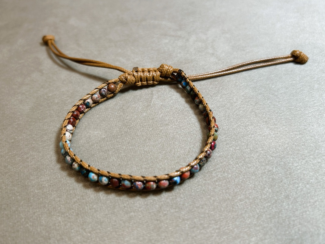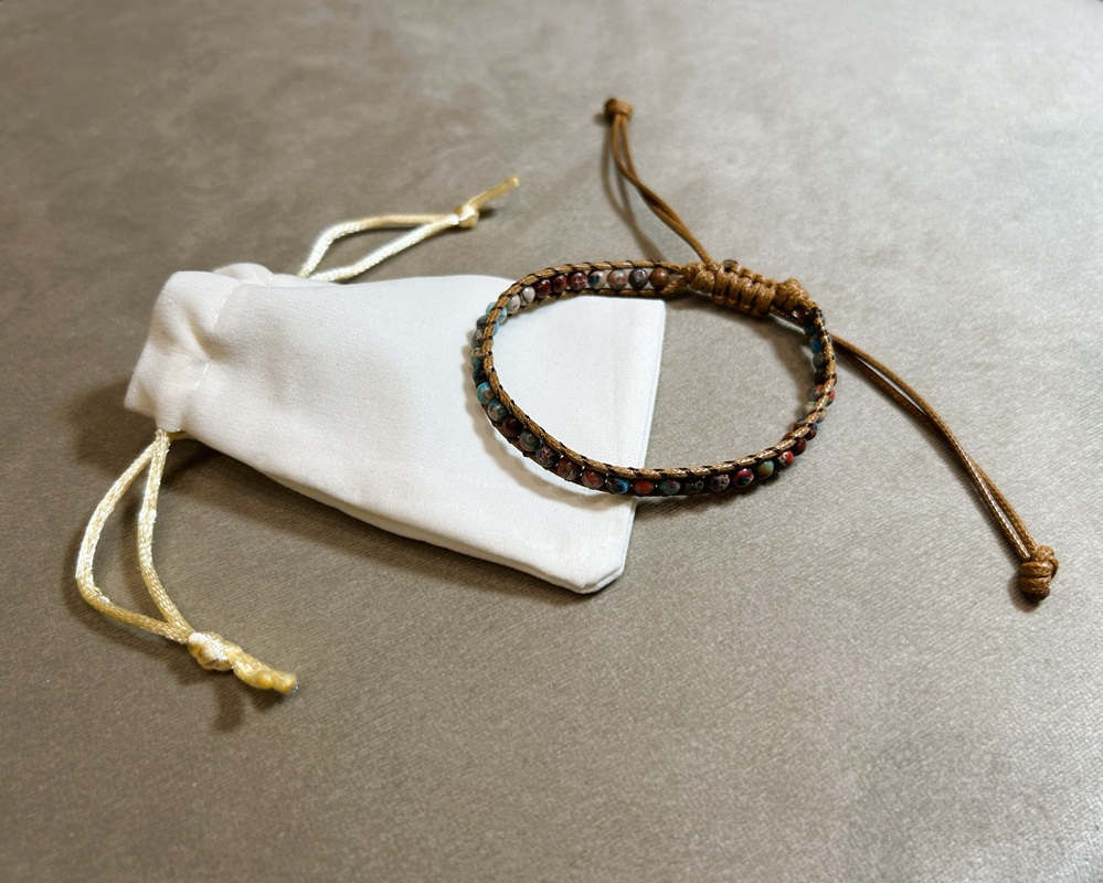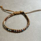 Naturalna, ręcznie tkana bransoletka stworzona z drobnych kamieni o średnicy 4 mm oraz afrykańskiego drewna sosnowego to wyjątkowe połączenie prostoty i rzemieślniczej estetyki. Harmonijne zestawienie naturalnych materiałów nadaje biżuterii autentyczny, lekko rustykalny charakter, idealnie wpisujący się w styl boho i eko.