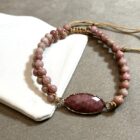 Zachwycająca ręcznie tkana bransoletka wykonana z naturalnego rodonitu — kamienia, który emanuje subtelnym blaskiem i elegancją. Każdy egzemplarz jest starannie wykonany ręcznie, co nadaje biżuterii niepowtarzalny charakter i luksusowy urok.